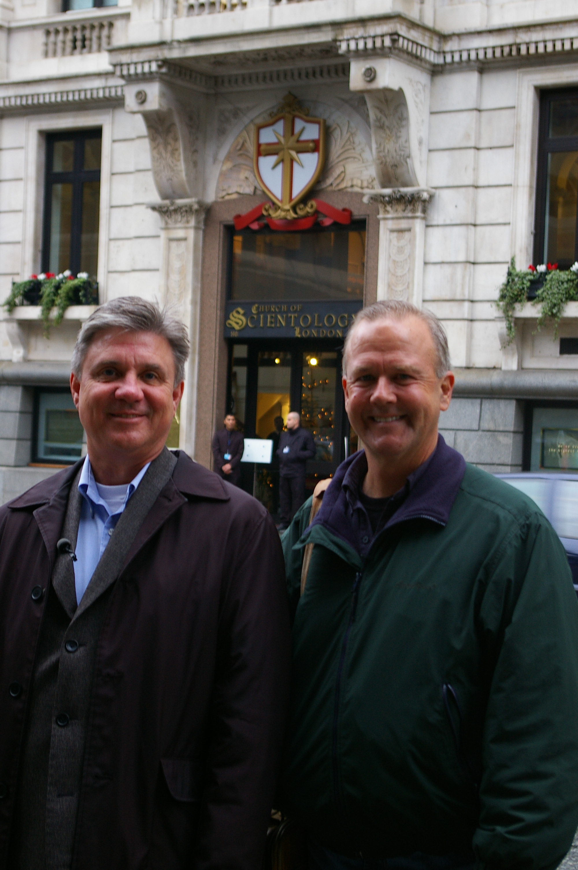 Mike and Marty with Knuckles and Bronco behing barring entry to London’s “Ideal Org”