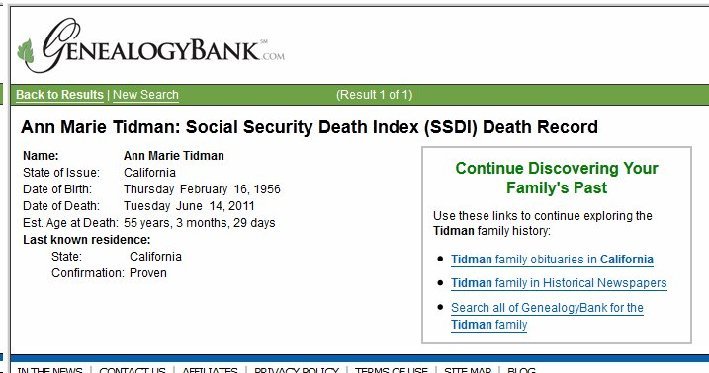 Ann Marie Tidman 1956-2011 – In Memoriam